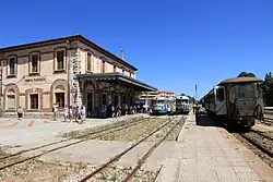 - π Stazione F.d.S.. A "dormant" narrow gauge railway station is used these days by ARST as a regional bus hub. Ticket office and waiting room are operating in the station. The toilet is in a relatively functional state.