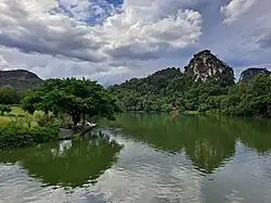 🌍Black Fish River Scenic Area(黑鱼河风景区),County Highway M74, Qushi Town (曲石镇M74县道)(bus no. 13),☏ +86 875 5853388.08:00-19:00.This tends to be the least visited of the park's scenic areas, but there are some interesting features here too. Black Fish River is an underground river that was forced to the surface after the original channel was blocked by lava flows. The river is named after the black fish that live in the river. Near the river, one can see some fine examples of columnar jointing.Free.(updated Jan 2019)