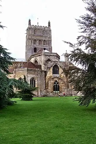 - π Tewkesbury Abbey (Abbey Church of St Mary the Virgin, Tewkesbury), Church Street, GL20 5RZ, β +44 1684 850959, office@tewkesburyabbey.org.uk. A truly beautiful building that can hold up its head in the same county as the fabulous Gloucester Cathedral. The Abbey boasts the largest Norman church tower in existence measuring 14 metres square and 45 metres high. The Abbey used to be walled and surrounded by monasterial buildings such as the cloisters, chapter house, library, dormitories, stables, kitchens and many more. If you have the time, it's worth booking a tour as the abbey has a lot of stories to tell. Free admission, but donations recommended for upkeep.