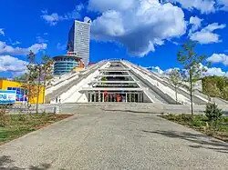 - 🌍 Piramida (International Centre of Culture), B.Desmoret e Combit/B. Bajram Curri. During daylight. Completely renovated and reopened in May 2023, the pyramid was originally built in 1987 according to the design of Enver Hoxha's daughter and was opened as a museum dedicated to her father. In 2007 US President George W. Bush gave a speech in front of this building. The building was the most expensive erected under communism, but by 2017 it had been empty and derelict for some time and threatened with demolition, instead it was saved and rebuilt. It is now possible to walk up the stairs to its peak and get a nice view of the city.