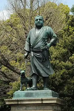 - 🌍 Saigō Takamori Statue (西郷隆盛像). Near the main entrance to the park from JR station stands an unassuming statue of a pudgy man walking his dog. This is Saigō Takamori, a famous samurai general best known for leading the doomed Satsuma Rebellion against the Meiji government (and the inspiration for Hollywood blockbuster The Last Samurai). These days, it's the canonical place for meeting people at the park.