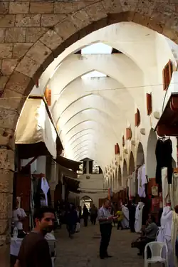 - 🌍 Tailor's Khan (Khan al-Khayyatin). In the neighborhood of the Ezzedin baths there are two fourteenth century Mamluk khans facing each other. The Tailor’ khan which adjoins the baths on the north., built in 1341. Its street stalls and storehouses until this day house the dry goods merchants and tailors of modern Tripoli. The Tailor’ khan is a sixty- yard long passageway with tall graceful arches on each side and ten transverse arches open to the sky. At the entrance an engaged Corinthian column is built in the brown sandstone wall and may be a Crusader Church pilaster with a re-used marble capital. There are other Roman granite column sections built into the walls in the vicinity.