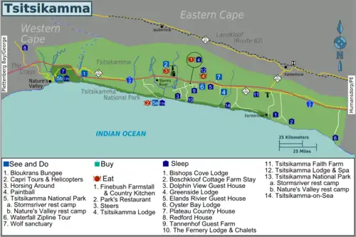 - Nature's Valley — a small village on the Garden Route mostly surrounded by the Tsitsikamma National Park with a network of trails that covers the surrounding hills and beaches