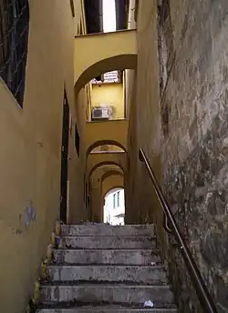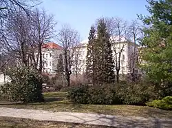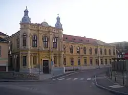 - 🌍 Laszlo Lovassy economic technical school (Lovassy László közgazdasági technikum, volt piarista gimnázium), Vár u. 10 (Next to City Archives). Former piarist high school. Listed Monument, baroque, 1750-1778. Designed by Joseph Tiethardt. First floor in 1821, the second floor was built in 1893.
