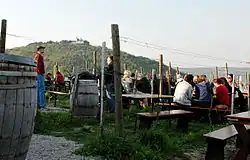 - 🌍 Heuriger Hirt, Eiserne Handgasse 165, Döbling (Kahlenbergerdorf S-Bahn (0.5km walk uphill)), ☏ +43 1 3189641. Apr-Oct: W-F 15:00-23:00, Sa Su 12:00-23:00. The Heuriger Hirt has a great view over the Danube and is hidden in middle of vineyards in a steep section of the Leopoldsberg hill.