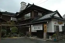 - Togetsuan, ☏ +91-767-621788. (渡月庵). Built like a Taisho-era ryokan using traditional techniques and materials. Gorgeous from the inside and outside, but regrettably surrounded on four sides by concrete monstrosities. Good indoor and outdoor bath, plus free use of the facilities at sister ryokan Hōsenkaku. Bed & breakfast (singles OK) from ¥7300, packages for two with dinner from ¥10000/person up.