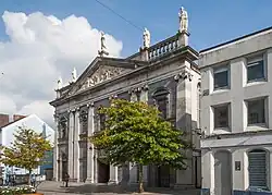 - π Cathedral of the Most Holy Trinity. The Roman Catholic building on the Quays. It was completed in 1793 on the site of a chapel when the Penal Laws against Catholic assemblies were relaxed. It's in Romanesque style resembling a particularly august bank.
