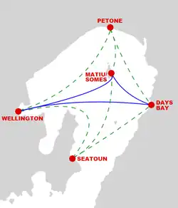 Approximate distances and non-stop travel times to the Wellington city centre: